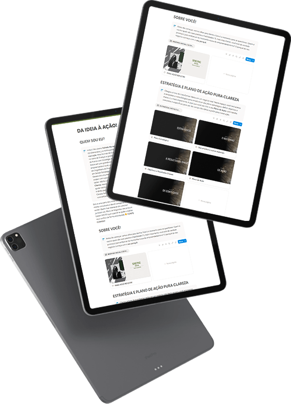 Um workspace completo, com modelos de planejamento estratégico, organizador de conteúdo, guia de rotina produtiva e ferramentas de validação, para tirar seu negócio do papel com segurança.
